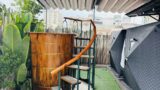 壁の半分がガラス張りになった開放的な空間です。約10名以上が入れる広さがあり、自然光を感じながら薪ストーブの柔らかな熱を楽しめます。 ここではセルフロウリュが可能ですが、ストーブの構造が少し特殊です。ふたを開けて投げ入れるタイプなので、使い方が分からない場合はスタッフや周囲の人に聞いてみましょう。