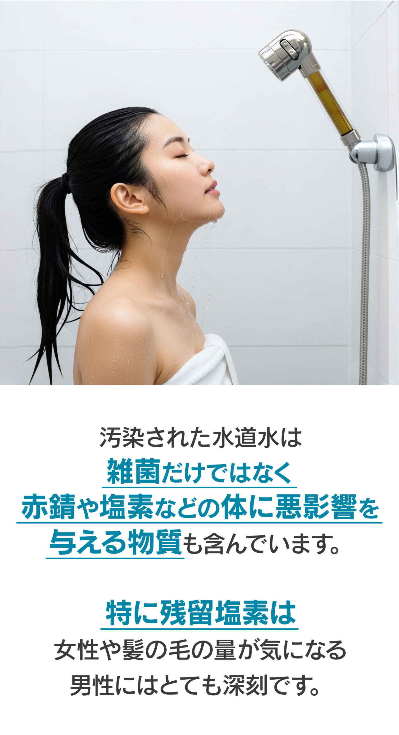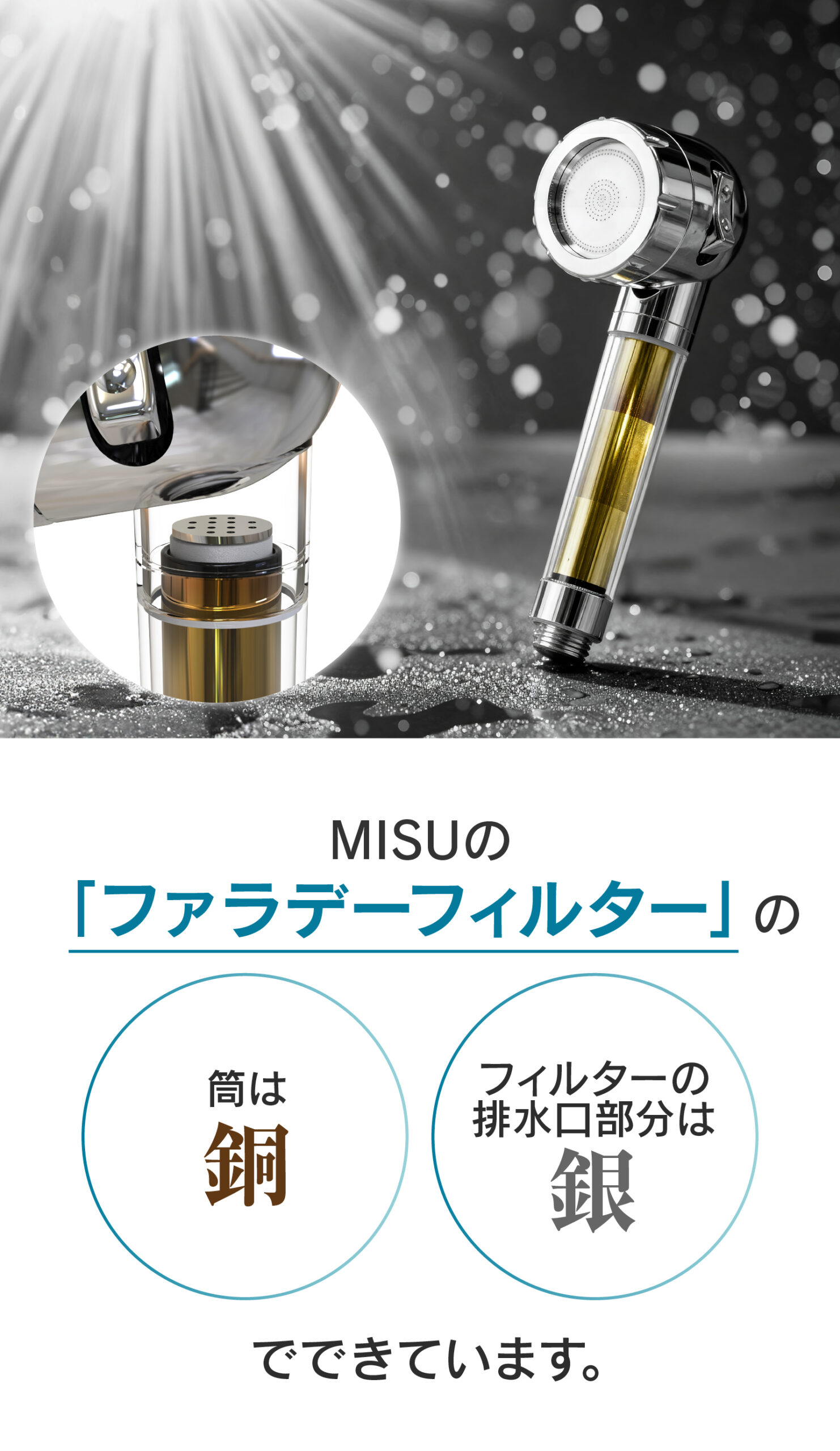 また、シャワーヘッド内部に水が溜まることで発生する細菌繁殖を抑制するために、銅パイプ構造を採用しました。