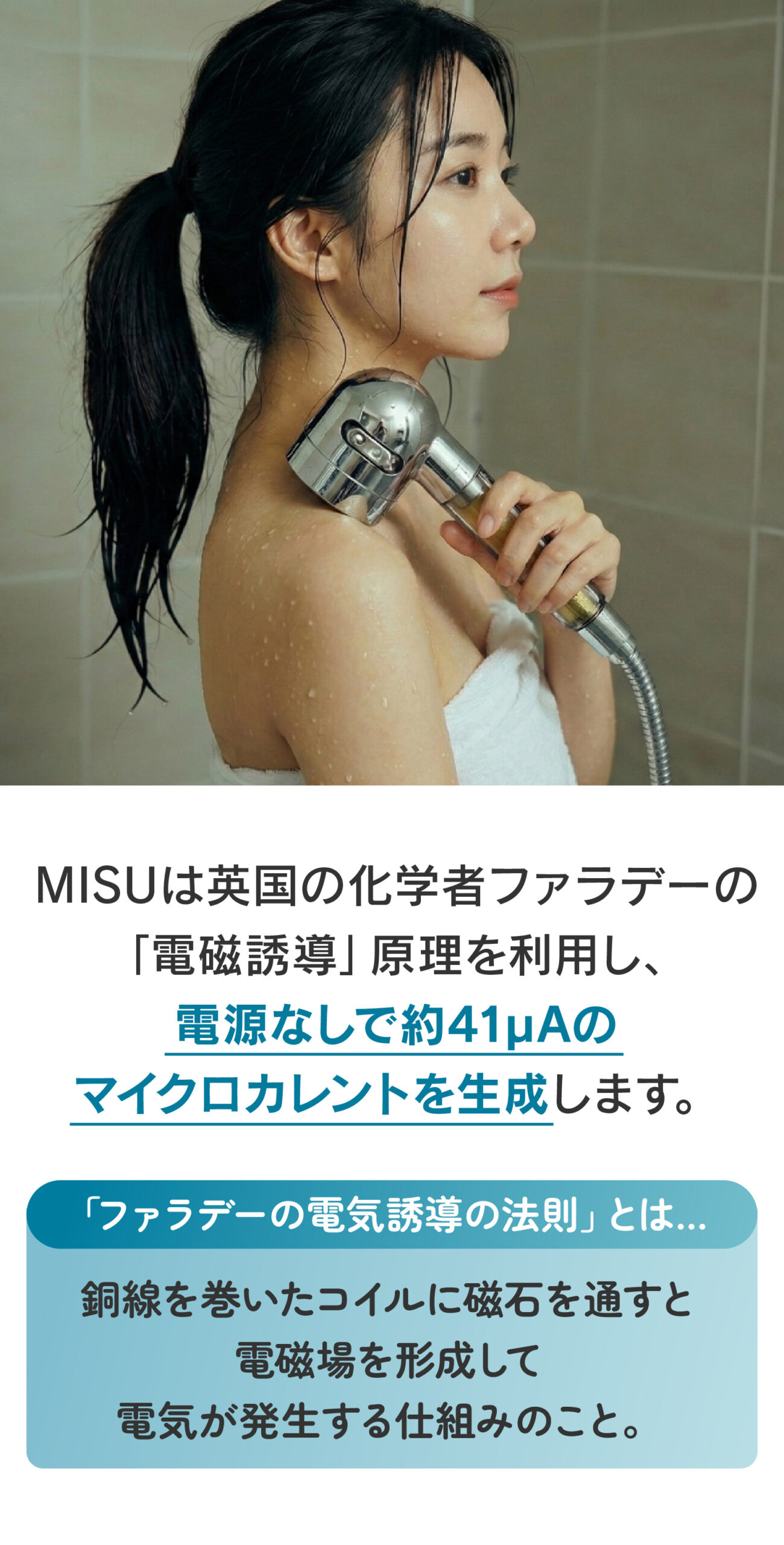 しかし電気や防水の問題により、実現は困難がありました。そこで電気を使わず自家電流を発生させる構造の研究を進め、ファラデーの電磁誘導原理に基づき、銅と磁石の組み合わせでマイクロカレントを発生させる構造を完成。これを通じて細菌除去機能を具現化しました。
