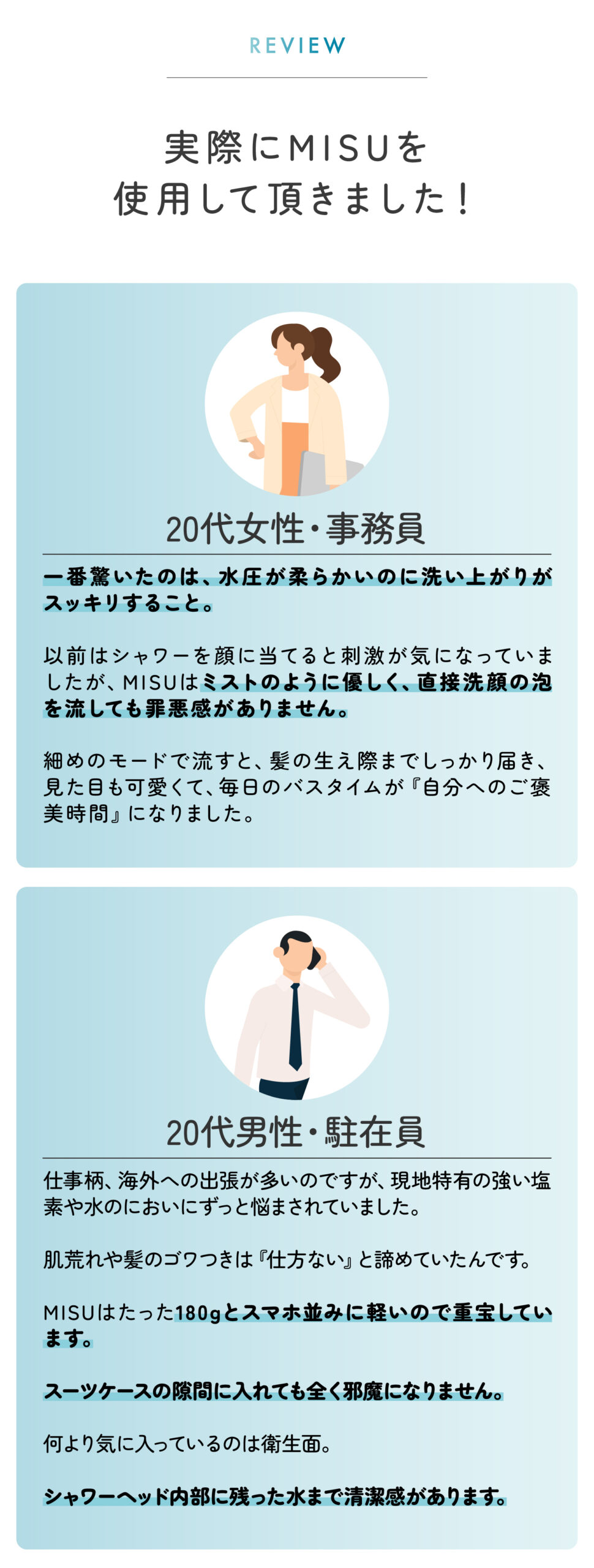 開発最終段階では、テストユーザーから「水が柔らかい」という反応より、「髪の毛が増えた」というフィードバックが多数寄せられ、マイクロカレントによる髪の成長効果が論文でも検証されていることが確認されました。これらの経験は想定外の成果でしたが、開発チーム自身もやはり直接その変化を体感しています。